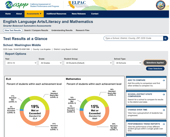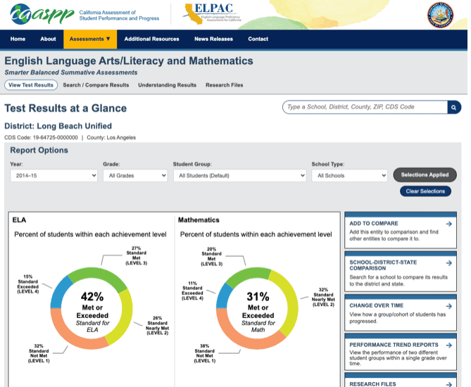 We had previously had the Standardized Testing and Reporting (STAR) test. Then we were in a transitional phase, we went maybe two years without a state test. Then, they introduced CAASPP, so it was preliminary, and the scores didn’t “count.”